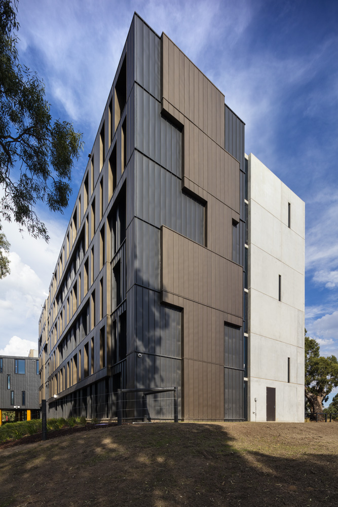 項(xiàng)目坐落于墨爾本本多拉地區(qū),是RMIT大學(xué)的學(xué)生公寓。RMA事務(wù)所受RMIT所托設(shè)計(jì)學(xué)生公寓,其設(shè)計(jì)將為在校生提供最好的居住環(huán)境。RMA事務(wù)所與RMIT以及公寓的經(jīng)營者Unilodge緊密合作,保證居住在公寓里的人可以享受到公共空間帶來的各種便利,并在核心區(qū)設(shè)計(jì)充足的學(xué)生活動功能。該建筑的設(shè)計(jì)是簡單的偏斜十字架,被澳大利亞古老的植物環(huán)繞。這些樹木包括以Wurundjeri氏族祖先命名的Keelbundoora Scarred Trees。