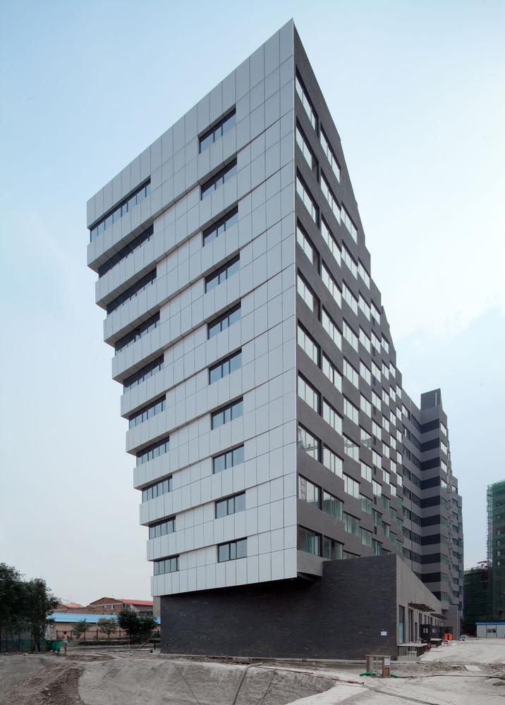 隨著過去十來年中國(guó)當(dāng)代藝術(shù)的升溫,年輕藝術(shù)家和各種與藝術(shù)相關(guān)的產(chǎn)業(yè)近幾年不斷涌入宋莊。當(dāng)?shù)卦鷳B(tài)村民的小院除了農(nóng)民自住以外,大部分已被租賃,并呈現(xiàn)短缺。原生態(tài)村落、藝術(shù)家、藝術(shù)產(chǎn)業(yè)和自由小商業(yè)之間的相互碰撞,以及外來人口的膨脹不可避免地帶來建筑密度的增加。在這種情形下,中小面積的公寓、工作室、展廳和小商業(yè)的集合體成為一種自然生長(zhǎng)出來的、適合當(dāng)?shù)匦枨蟮慕ㄔO(shè)模式。與政府統(tǒng)一開發(fā)不同,宋莊特定的地域文化特征使得一棟建筑的建造通常由幾方集資,建成后共同經(jīng)營(yíng)。東潤(rùn)公寓就是這樣一個(gè)集合體,它的設(shè)計(jì)體現(xiàn)出建筑的內(nèi)在成因和經(jīng)營(yíng)模式,是對(duì)當(dāng)?shù)靥囟ㄎ幕h(huán)境的映射。它位于宋莊最主要道路一側(cè),十字環(huán)島的東北角?;貣|西長(zhǎng)110米,南北進(jìn)深20米。