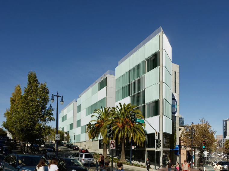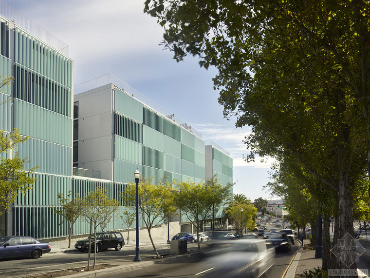 8 Octavia毗鄰101公路,成為進入舊金山的地標性建筑。由住戶自由操作的百葉窗,讓建筑立面展現(xiàn)出變化的形象。為了更有效的利用空間,建筑采用復式設計,且每個單元中間包含一個中庭。建筑設備隱藏在墻壁內(nèi),為居住者提供足夠的可利用給空間。場地位于101公路與城市道路的連接處,這里也是舊金山西北區(qū)的入口。The First Baptist Church教堂的典型立面及顯著的檐口是這棟建筑的顯著標志。與其相反的,在Octavia Boulevard大道的另一邊,8 Octavia完善了城市的入口景觀。這棟地標性建筑以其傳統(tǒng)又創(chuàng)新的外貌,成為舊金山的新地標。細長的建筑體量在街道上延展,并在兩端形成商業(yè)區(qū)。傳統(tǒng)上的舊金山街道立面都較為精致,賦有精巧繁復的立面裝飾,除此之外,這些當代建筑需用較低的能量消耗和較少的材料來滿足居住的需求。建筑外表皮需具備自我調(diào)節(jié)能力,隨著時間和季節(jié)的變化做出相應改變,并適時的調(diào)整室內(nèi)環(huán)境氣候。在建筑的西立面,每一戶居住著都可以通過調(diào)整外立面百葉窗來控制自家的太陽光照強度,噪音大小,并同時改變著外立面圖案。這種不統(tǒng)一的變化如同指示牌,不斷映射著居住者的生活狀態(tài)。