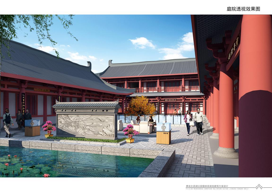 文昌湖公園位于費(fèi)縣自由路上,地處河邊。而儒林苑則是在文昌湖公園里修建的一處休息用的庭院。該處庭院在設(shè)計(jì)初期選擇了多種建筑樣式,最后定格在四合院的建筑風(fēng)格上。