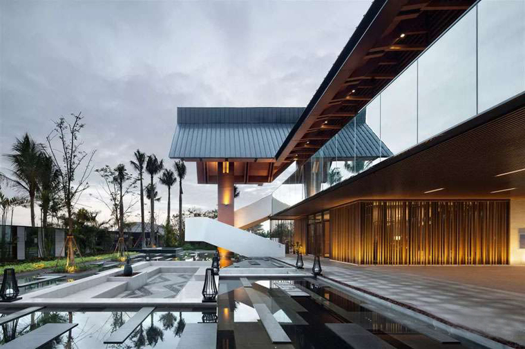在設(shè)計中,我們往往需要同時照顧兩個相反的原則,在控制的同時釋放,在放下的時候提起,在前進的時候后退,在延續(xù)的同時打破。在當下大部分啟動區(qū)氣質(zhì)趨向于統(tǒng)一的時候,如何通過傳統(tǒng)文化和現(xiàn)代美學的結(jié)合,打造出“不堆疊符號、不單調(diào)重復”的建筑形式,將是一個被廣泛討論的命題。我們希望找到一種方式,在設(shè)計中真正能做到在大的同時小一點,在輕的同時重一點,在深的同時淺一點,在傳統(tǒng)的同時現(xiàn)代一點,因為所有的元素都能最終找到一種方式共存,所有的探索本質(zhì)上都是對下一波浪潮的可愛幻想。本項目位于海南省??谑?,作為該地塊的展示中心及售樓中心,本案引領(lǐng)了整個地塊的精神面貌。業(yè)主希望建筑兼顧功能與審美的需求,風格上體現(xiàn)當?shù)亟ㄖ厣耐瑫r,不失現(xiàn)代流行氣質(zhì)。由繁至簡,探討形體上的另一層境界;由簡至繁,感悟與理解隨之不斷升華。完整表達設(shè)計的初衷,需要靠所有人不懈的努力和互相理解,在此由衷感謝業(yè)主從項目之初到建筑落筆以來對我們的信任,和不遺余力的支持。